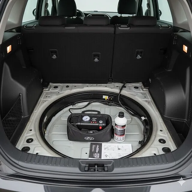 スペアタイヤに代わって**「パンク修理キット」や「ランフラットタイヤ」**を採用するモデルが主流となっています。